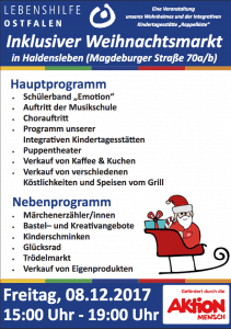 Am 08.12.2017 laden wir Sie auf das Gelände des Wohnheimes und der Kita „Rappelkiste“ in die Magdeburger Straße 70 a/b in Haldensleben ein.
