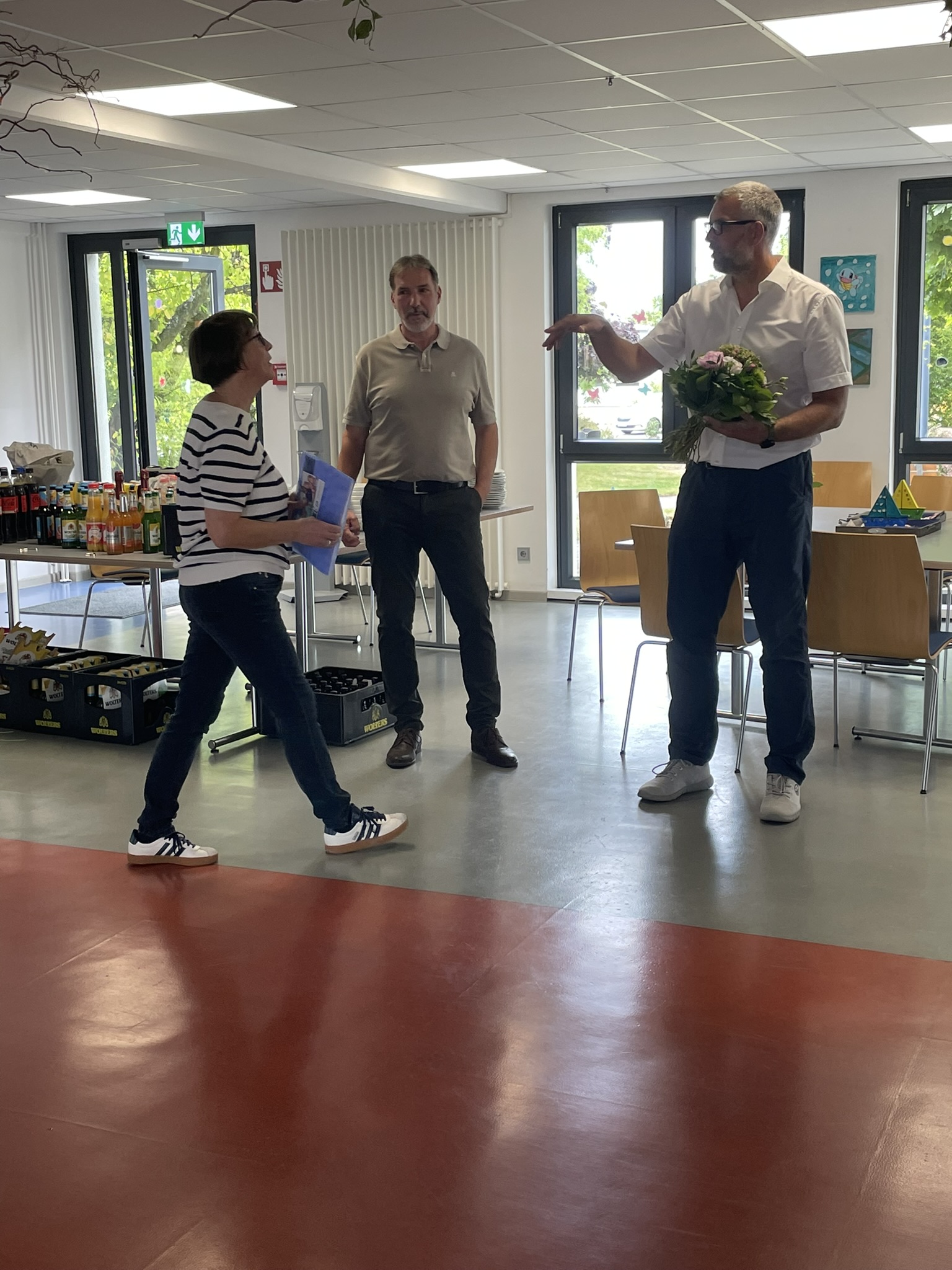 Bernd Schauder, Guido Geckeler sowie der Betriebsrat bedankten sich für die langjährige Zusammenarbeit und überbrachten gute Wünsche für die Zukunft. Christine war in der Tagesförderstätte tätig und begleitete im Laufe der Jahre viele Klientinnen und Klienten. Ihre Arbeit war geprägt von Verlässlichkeit, Engagement und einem offenen Umgang im Team.