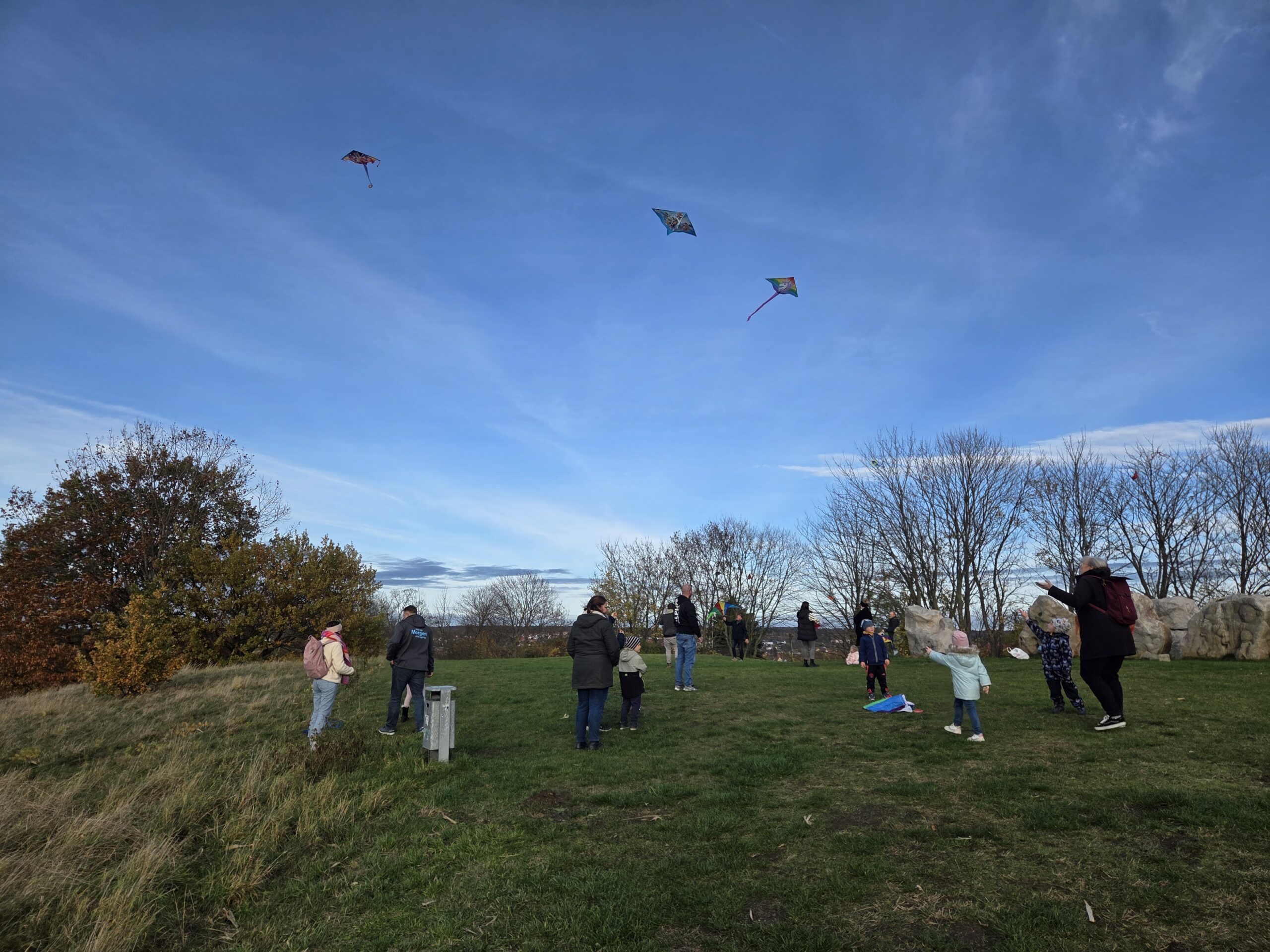 Das Drachensteigen war ein rundum gelungener Nachmittag: Bei schönstem Herbstwetter stiegen die bunten Drachen in die Lüfte, die Kinder liefen, kletterten und hatten sichtlich Spaß. Auch für das leibliche Wohl war bestens gesorgt – dank der mitgebrachten Leckereien und Getränke der Eltern wurde die Veranstaltung zu einem besonders gemütlichen Beisammensein.