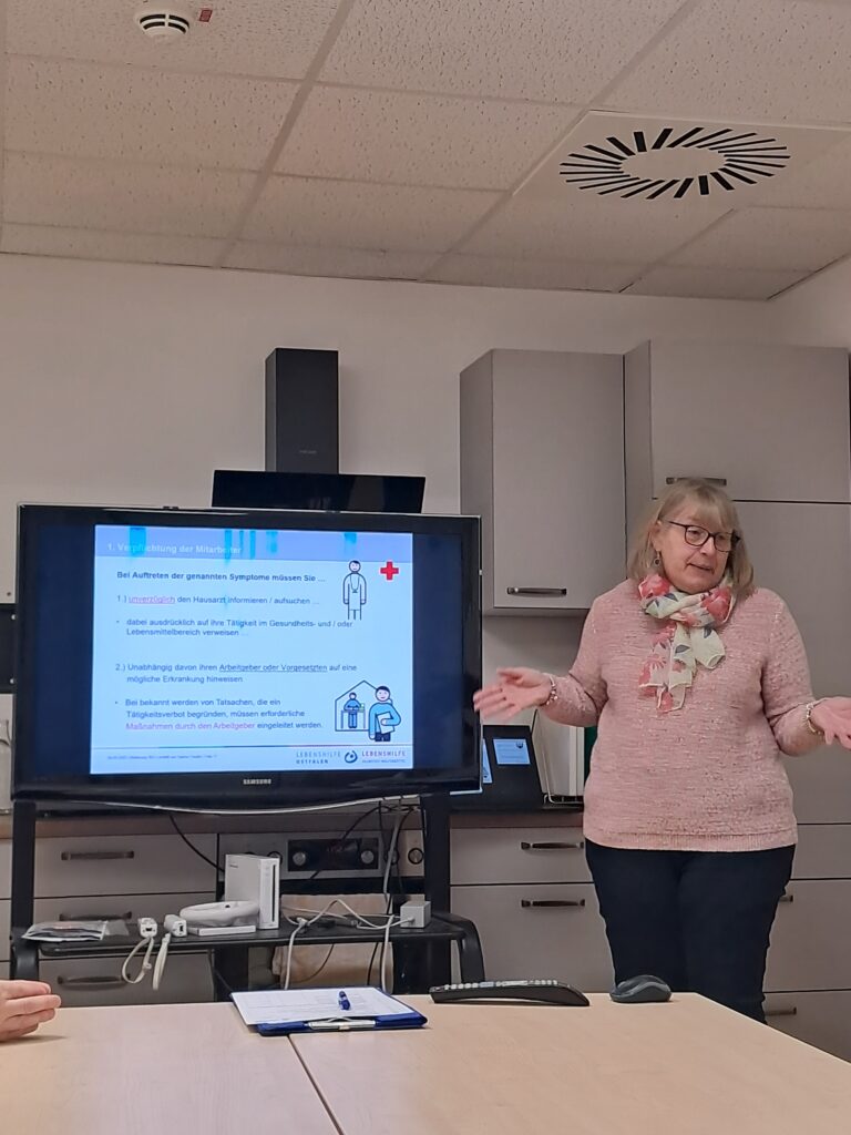 10. April 2025Für unsere Beschäftigten in der Küche und am Kiosk in der Werkstatt Fümmelse fand ein spezieller Vortrag zum Lebensmittelschutzgesetz statt. Unsere Hygienebeauftragte vermittelte wichtige Grundlagen rund um Hygienevorschriften, den sicheren Umgang mit Lebensmitteln und rechtliche Vorgaben im Arbeitsalltag.