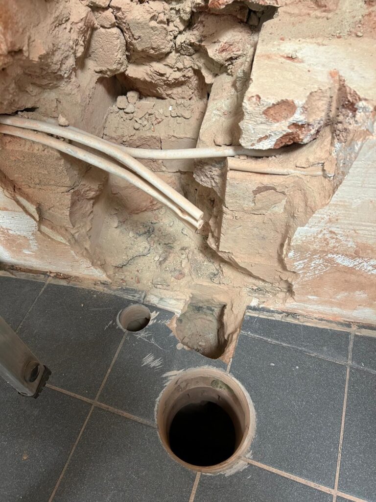 Eine neue Wasserleitung wird in die oberen Räumlichkeiten verlegt, damit unsere Beschäftigten dort künftig die Sanitärräume nutzen können. Außerdem entstehen neue Anschlüsse für einen Konvektomaten sowie zusätzliche Wasseranschlüsse für den Mittelblock.